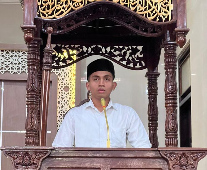 Kendari, Jaringansultra.com – Menjadi Khatib pada salat Jum’at di Mesjid Al-Amin kepolisian Daerah (Polda) Sulawesi Tenggara (Sultra), Ketua Badan Eksekutif Mahasiswa (BEM) Universitas Halu Oleo (UHO) Kendari, Abdullah Alhayad Arafah sampaikan tiga amalan yang dicintai oleh Allah SWT, pada Jum’at 24 September 2023.