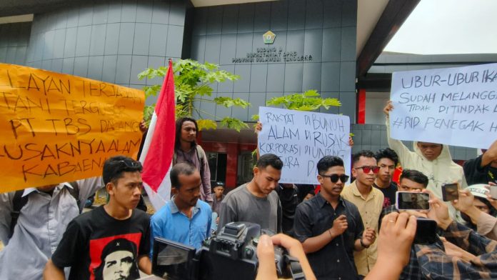 Kendari, Jaringansultra.com – Konsorsium Mahasiswa Sultra (Korum) yang tergabung dalam Aliansi Mahasiswa Peduli Lingkungan dan Kehutanan (AMPLK) Sultra, Amara Sultra dan Jangkar Sultra kembali melakukan aksi unjuk rasa menyoal dugaan pencemaran lingkungan PT Tambang Bumi Sulawesi (TBS) di Blok Watalara, Desa Pu’ununu Kecamatan Kabaena Selatan, Kabupaten Bombana, Senin 10 Februari 2025.